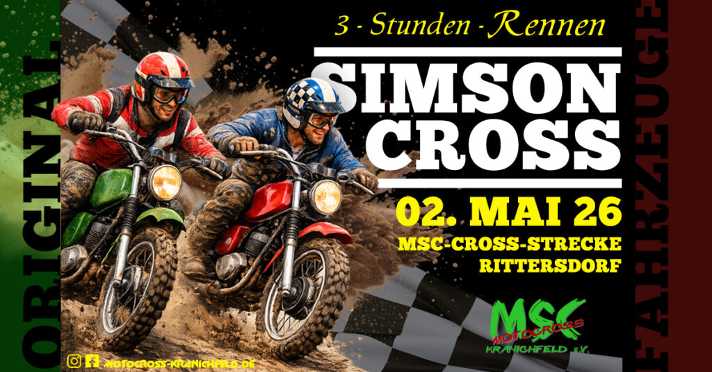 Unsere Motocrossstrecke wird wieder zum Schauplatz spektakulärer Rennen und heißer Duelle auf der Piste! Mehrere Rennklassen sorgen für abwechslungsreiche Action – darunter auch eine Frauenklasse, in der Power, Tempo und Mut unter Beweis gestellt werden.